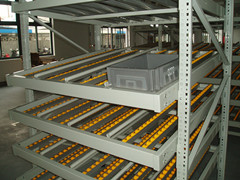 Shelf levels are sloped to allow the cartons to flow from the loading area to the picking area and using aluminum and matal plate roller tracks system, "first in and first out" is implemented. It is convenient to access and suitable for places such as the two sides of the assembly line, distribution center.etc. Electronic tags can be attached to make the goods management more easily.