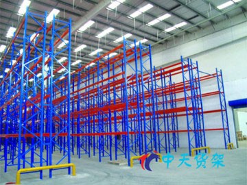 貫通式貨架又稱通廊式貨架或駛入式貨架。貫通式貨架采用托盤存取模式,適用于品種少,批量大類型的貨物 貫通式貨架儲存。貫通式貨架除了靠近通道的貨位,由于叉車需要進入貨架內部存取貨物,通常單面取貨建議不超過7個貨位深度。為提高叉車運行速度,可根據(jù)實際需要選擇配置導向軌道,與貨位式貨架相比,貫通式貨架(駛入式貨架)的庫空間利用率可提高30%以上,貫通式貨架(駛入式貨架)廣泛應用于冷庫及食品、煙草行業(yè)。